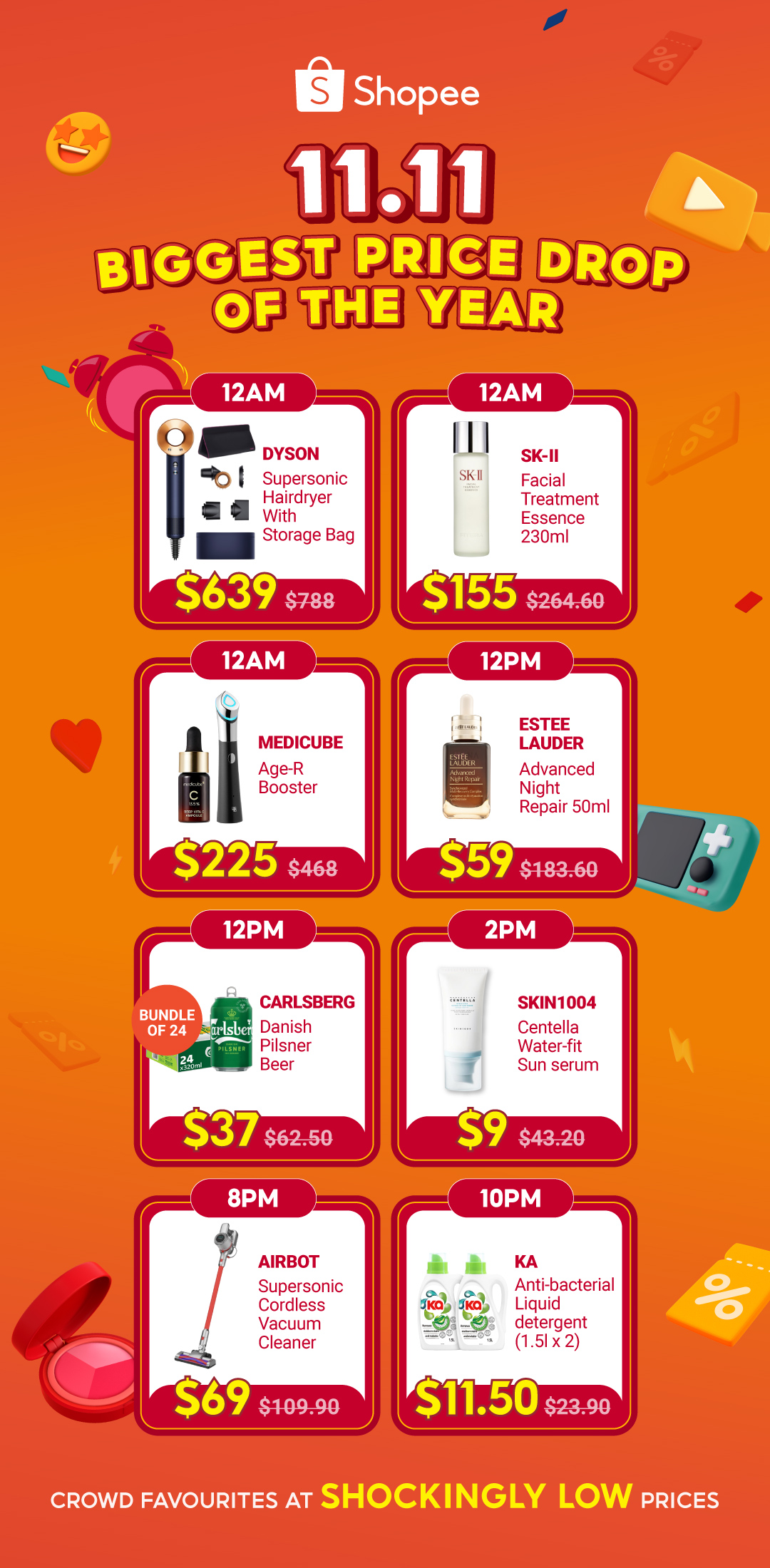 Shoppers can also look forward to the Biggest Price Drop of the Year. At selected timings of the day, shoppers can cart out shockingly low price deals from favourite brands like Dyson, SK-II, Medicube, Estee Lauder and more!* To sweeten the deal, shoppers can combine shop vouchers and Shopee vouchers at checkout to get the lowest prices.