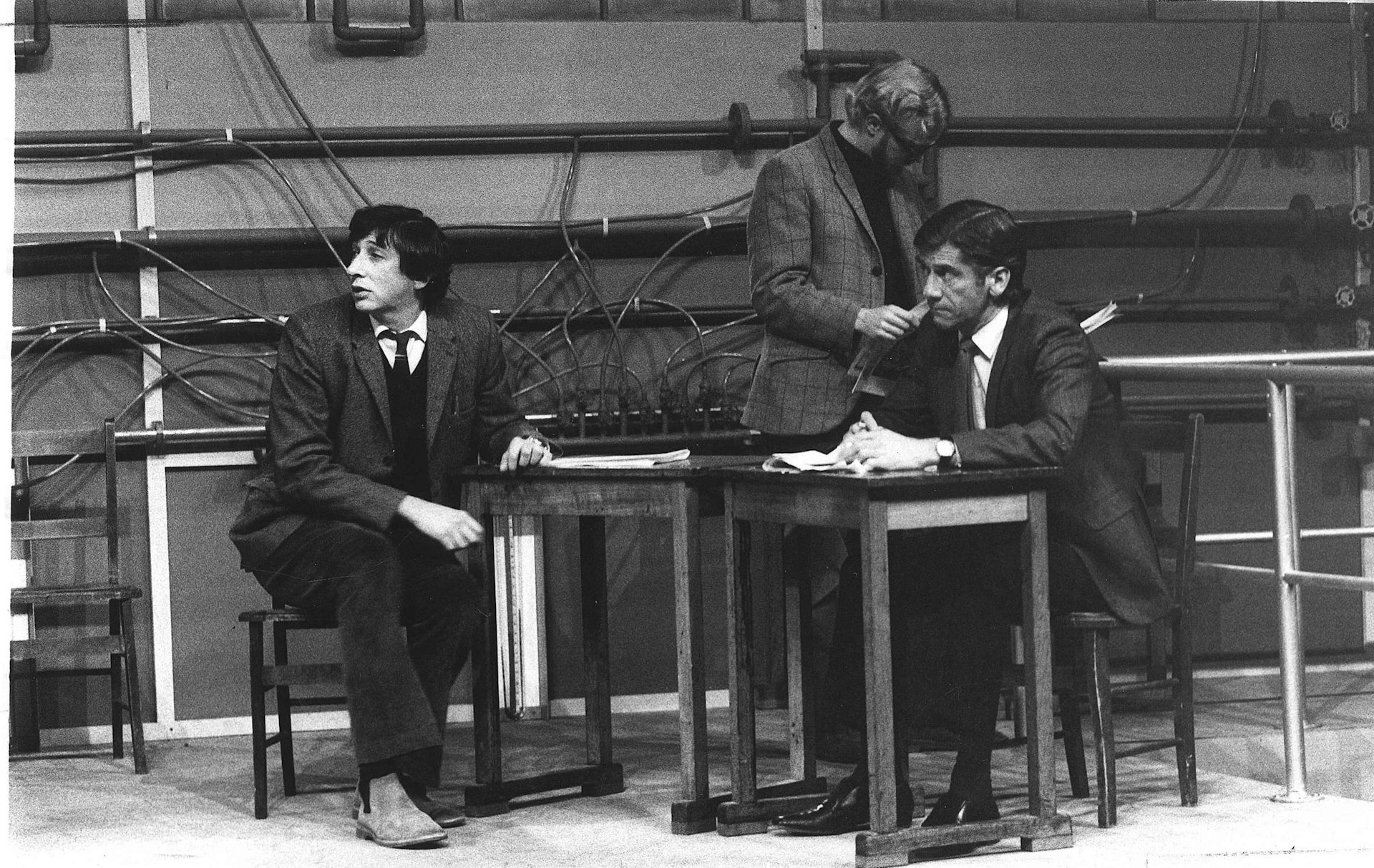 George Szewcow as John, Patrick Frost as Peter and Leslie Dayman as Hans in a SATC production of The Department at Parade Theatre, Sydney, 1975.