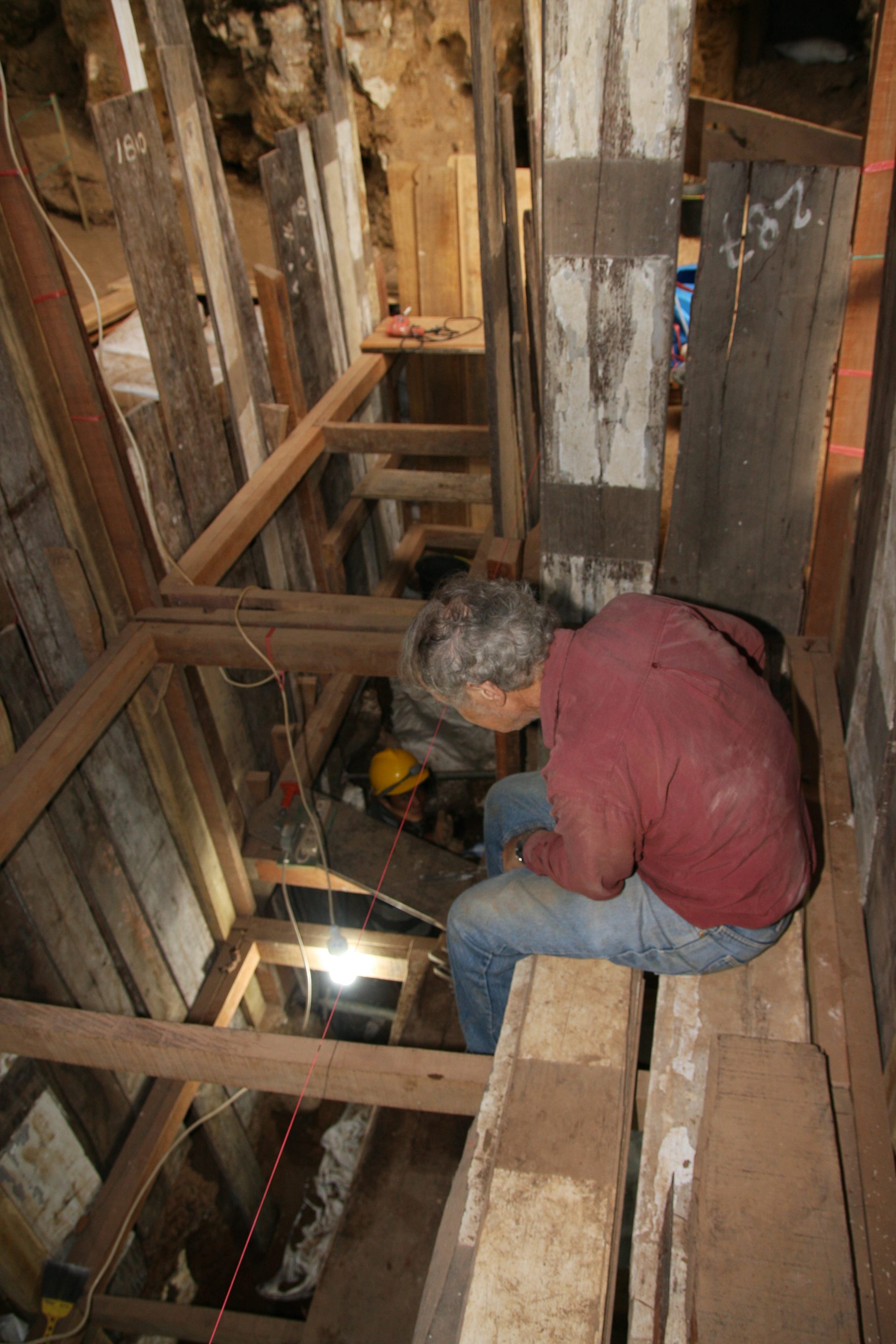 Over three seasons (2011-13) we excavated to a depth of 6.2m – deeper than ever before. It was a trying dig, requiring the use of heavy-duty shoring to support the unstable walls and specialist drilling equipment to remove huge rocks that had hindered prior work at this site.